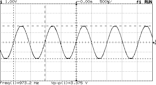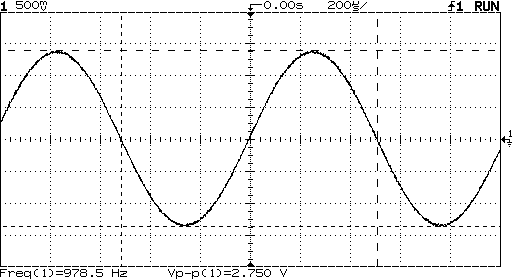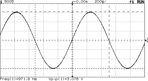Our wave table has 48 points per cycle, for a calculated frequency of 976.5625 Hz, in good agreement with the measured frequency (on the Agilent multimeter) of 976.56 Hz.