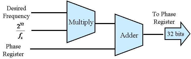 The conversion of frequency to phase increment requires the multiplicative constant: