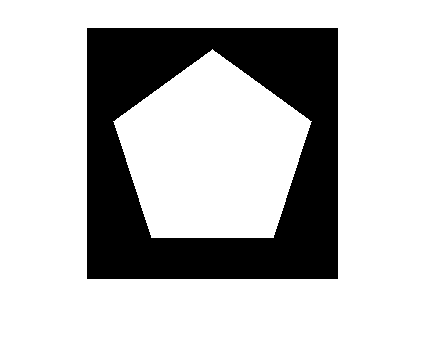 n = 5; theta = (2*pi/n)*(0:n) -pi/10; p = [cos(theta') sin(theta')]; z = polygon(x,y,p); imshow(z>0.5);