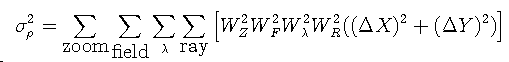 Based on the input ray grid specification (DEL), ray grids are traced at each wavelength, field, and zoom position. The wavefront variance is minimized at each field by computing the optimum phase shift and x and y shifts from the chief ray to the best fit image centroid. Given this information, the terms in the error function are then computed.