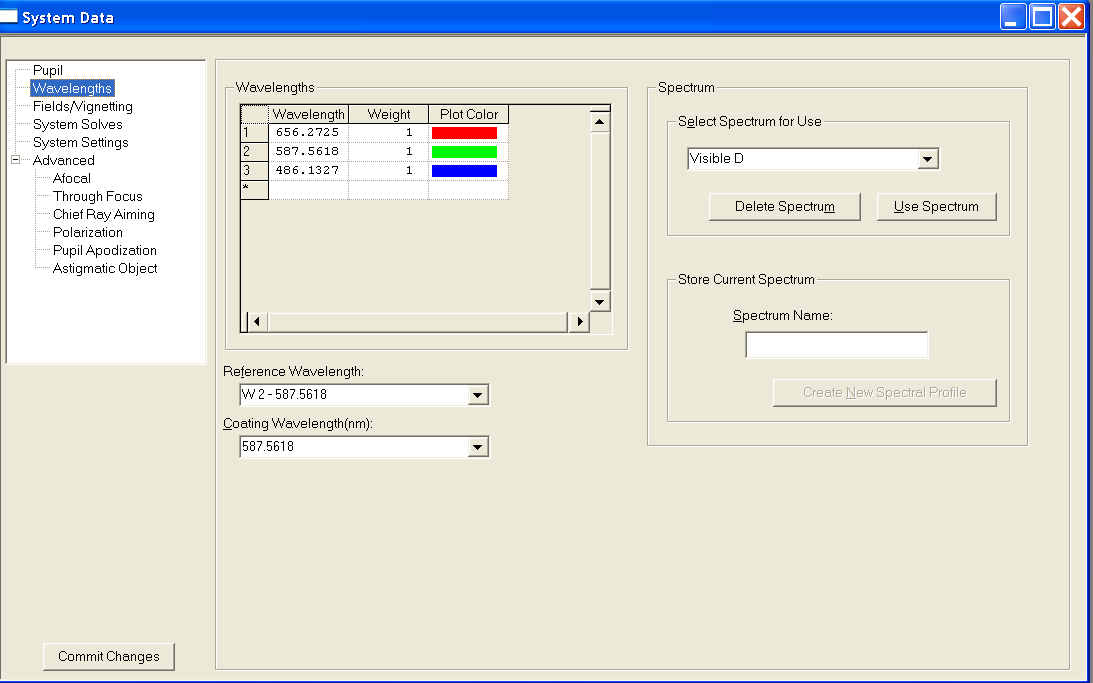 wavelengths is to select a spectrum. We have chosen Visible D.