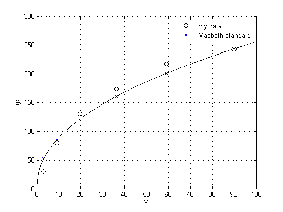 legend('my data','Macbeth standard');
