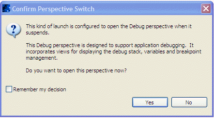 The debug perspective, shown below, collects a number of views applicable to debugging operations.