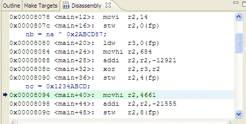 stw r2,0(fp)stores the contents of register r2 to the stack location corresponding to na.