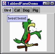 tabbedPane.addTab("Bird", null, panel1, "tweet tweet");