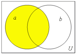 Below are Venn diagrams for the set a, shaded in yellow, and for the complement of a, everything in U that is not in a.