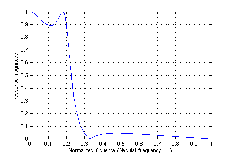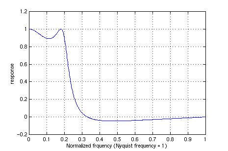 xlabel('Normalized frquency (Nyquist frequency = 1)')