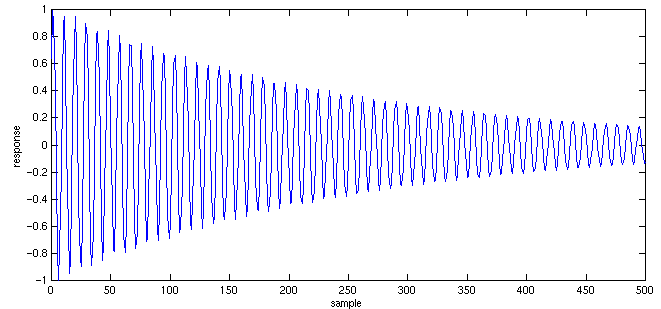 function [b,a] = RESON(rho,theta) % RESON % % Reson filter % % RESON(rho,theta) % re = rho*cos(2*pi*theta); si = sin(2*pi*theta); b = (1-rho^2)*si; a = [1 -2*re rho*rho];