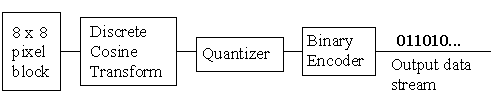 JPEG divides up the image into 8 by 8 pixel blocks, and then calculates the discrete cosine transform (DCT) of each block. A quantizer rounds off the DCT coefficients according to the quantization matrix. This step produces the "lossy" nature of JPEG, but allows for large compression ratios. JPEG's compression technique uses a variable length code on these coefficients, and then writes the compressed data stream to an output file (*.jpg). For decompression, JPEG recovers the quantized DCT coefficients from the compressed data stream, takes the inverse transforms and displays the image.