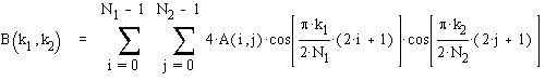The input image is N2 pixels wide by N1 pixels high; A(i,j) is the intensity of the pixel in row i and column j; B(k1,k2) is the DCT coefficient in row k1 and column k2 of the DCT matrix. All DCT multiplications are real. This lowers the number of required multiplications, as compared to the discrete Fourier transform. The DCT input is an 8 by 8 array of integers. This array contains each pixel's gray scale level; 8 bit pixels have levels from 0 to 255. The output array of DCT coefficients contains integers; these can range from -1024 to 1023. For most images, much of the signal energy lies at low frequencies; these appear in the upper left corner of the DCT. The lower right values represent higher frequencies, and are often small - small enough to be neglected with little visible distortion.