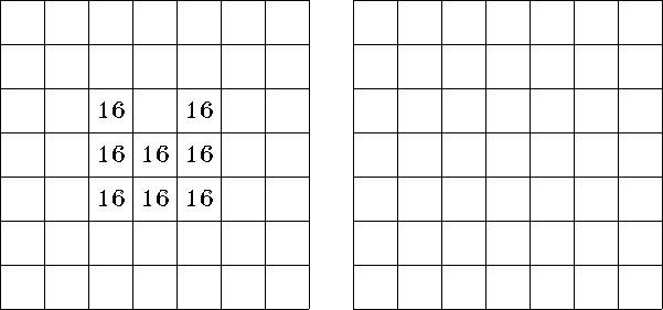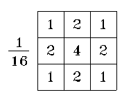 The mask, shown on the left, is centered at the pixel z5 shown on the right. Pixels marked x do not take part in the operation. | ![]() |