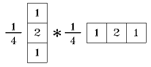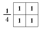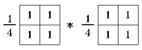 The [ 1 2 1 ] filter can be constructed from the relative sizes of the areas shown in yellow on the right. The final effect is a uniform weight over a 2 x 2 pixel area. | ![]() |