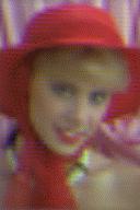 Sampling reduces the size of an image by extracting pixels on a periodic sample grid, every 4th pixel in every 4th row, for example. Sampling produces a different reduced image than averaging, especially in patterned regions. Compare the hat and hair in the examples below.