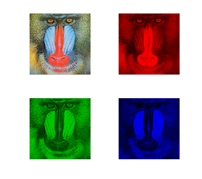 title = 'Mandrill'; base = 'Mandrill'; filename = [base '.jpg']; rgb = im2double(imread(filename)); % open output html file fp = fopen([base '.html'],'wt'); str = [title ' Color Components']; fprintf(fp,'<html>\n<head>\n<title>%s</title>\n</head>\n<body>\n<h1>%s</h1>\n',str,str);
