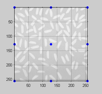 findbounds first creates a grid of input-space points. These points are located at the center, corners, and middle of each edge in the image.