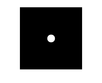 clear; N=256; D=16; [p x] = make_pupil(N,D); imshow(p);