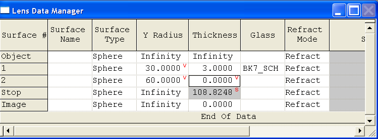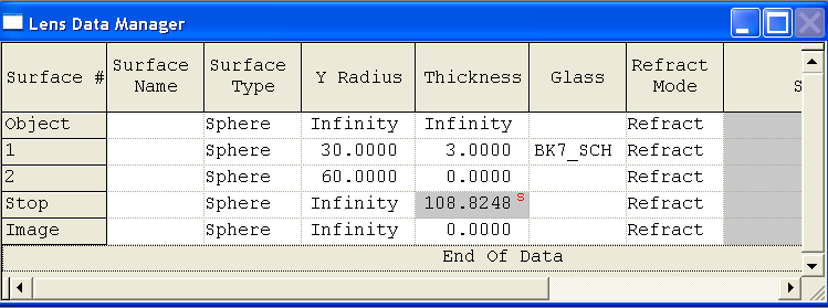 on the "Quick Lens Drawing" window) will show that the lens is now in focus.