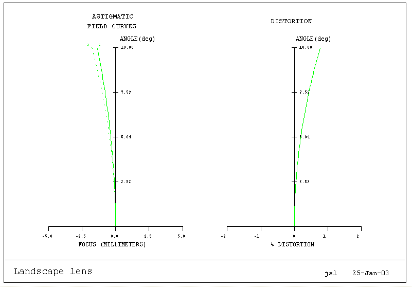 This display shows the tangential and sagittal field curves and the distortion, both as a function of field height on the vertical axis.