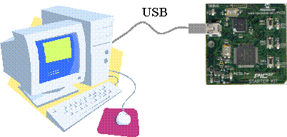 Embedded computers seldom have an attached console. The development configuration for the PIC32 Starter Kit consists of your computer connected to the PIC32 board via a USB cable. The starter kit includes a small debug library that provides console I/O (puts and gets) through the USB cable to the MPLAB IDE. |