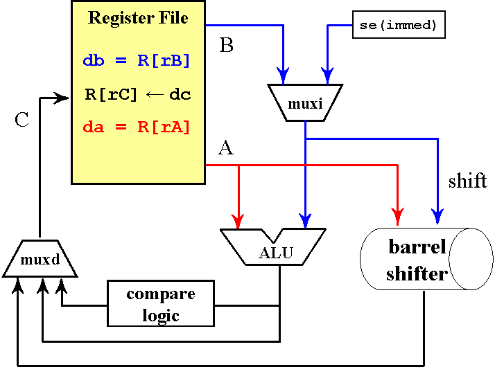 if (signed) rA < (signed) rB | then rC ← 1 else rC ← 0 cmplti rB, rA, IMM16